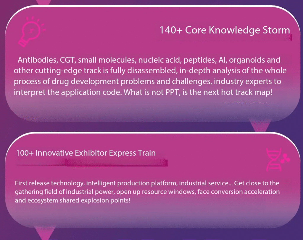 - Focus on CGT process development (35% of exhibitor demand), ADC internationalization strategies (new forum in 2025), and AI-driven drug discovery (an extension of the popular topic from the 2024 Shanghai event to Beijing).
